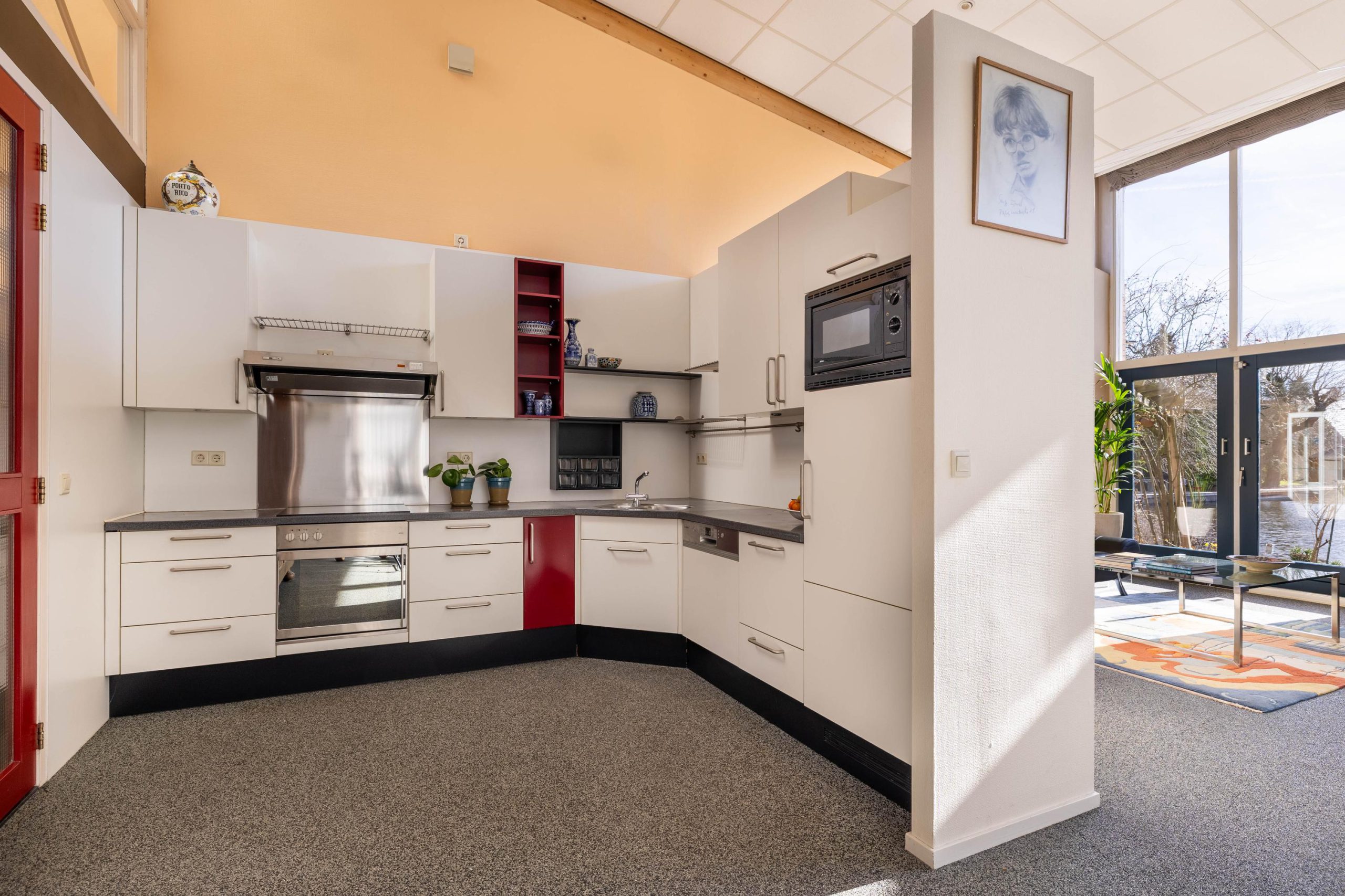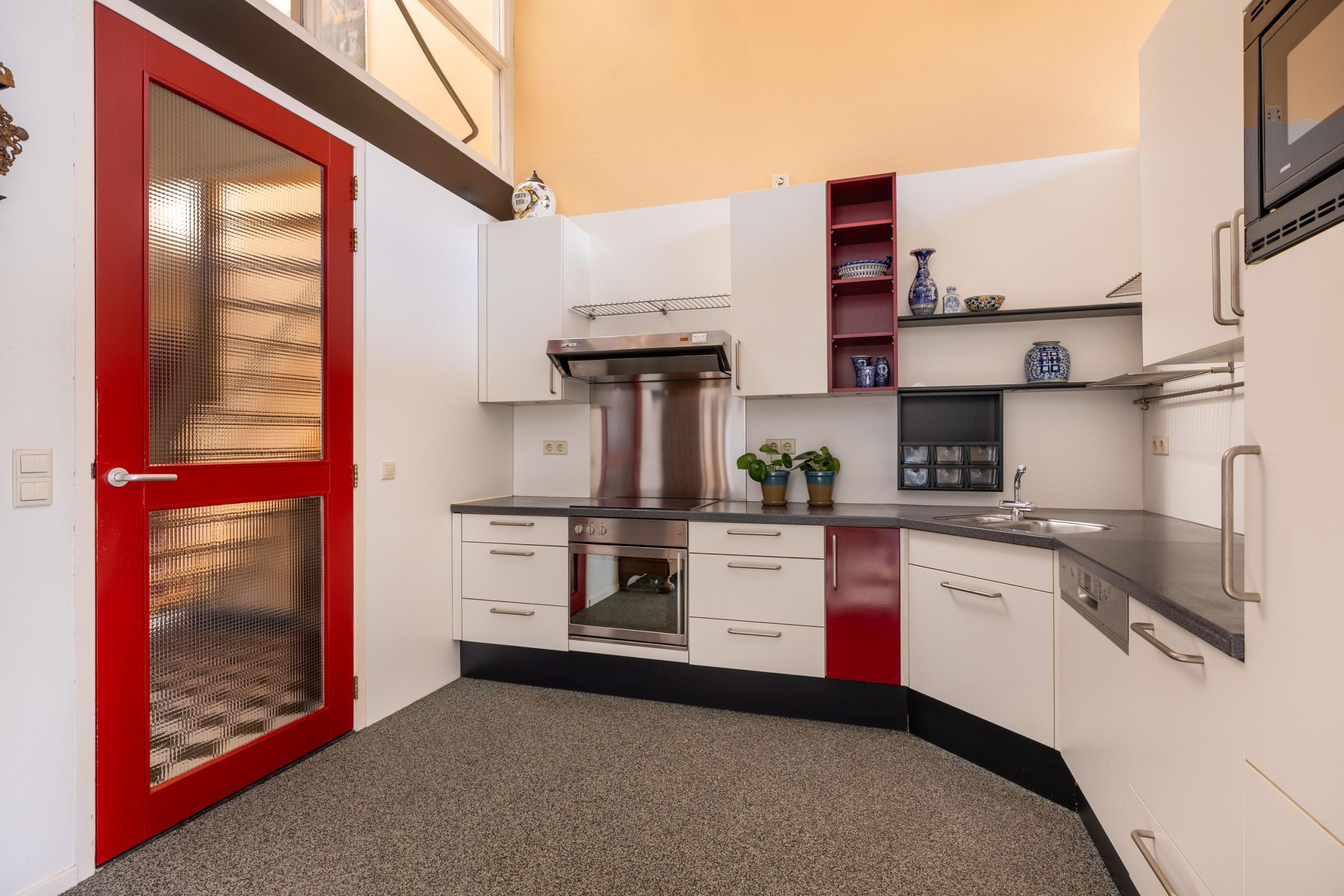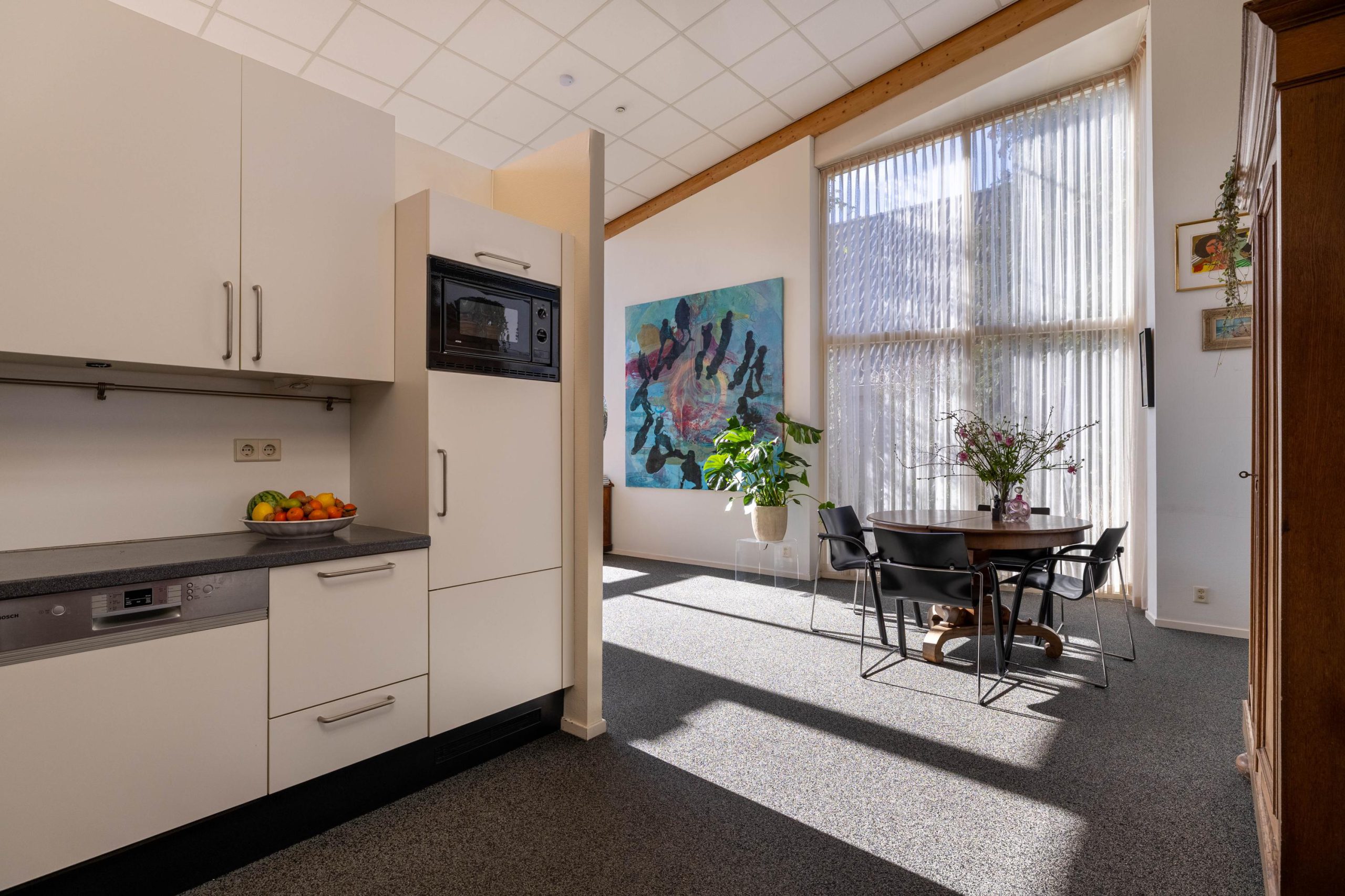 De keuken ligt aan de woonkamer en heeft daarnaast een fijne plek voor de eettafel bij het raam. Ook hier is veel daglicht en uitzicht op de tuin. De keuken is netjes onderhouden en van goede kwaliteit.