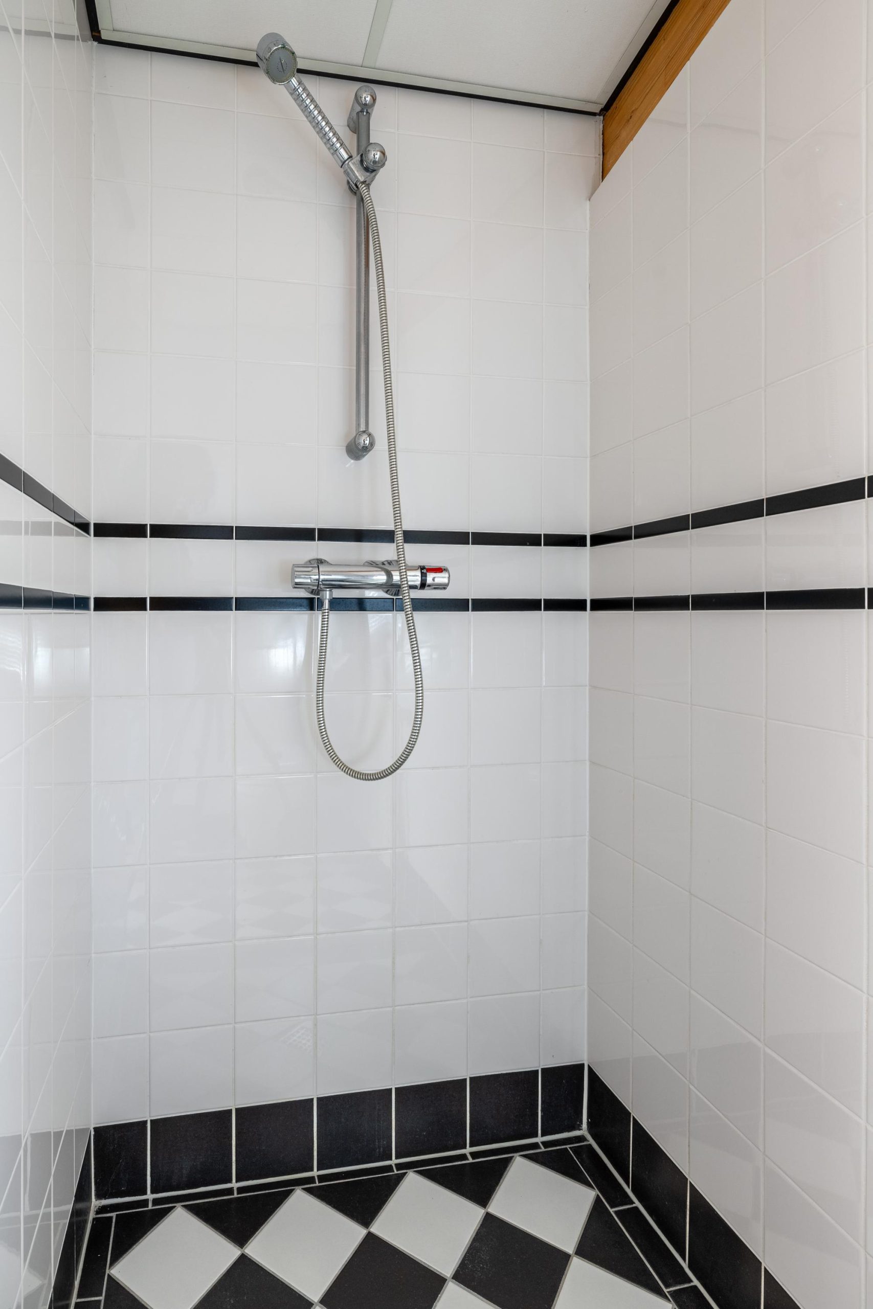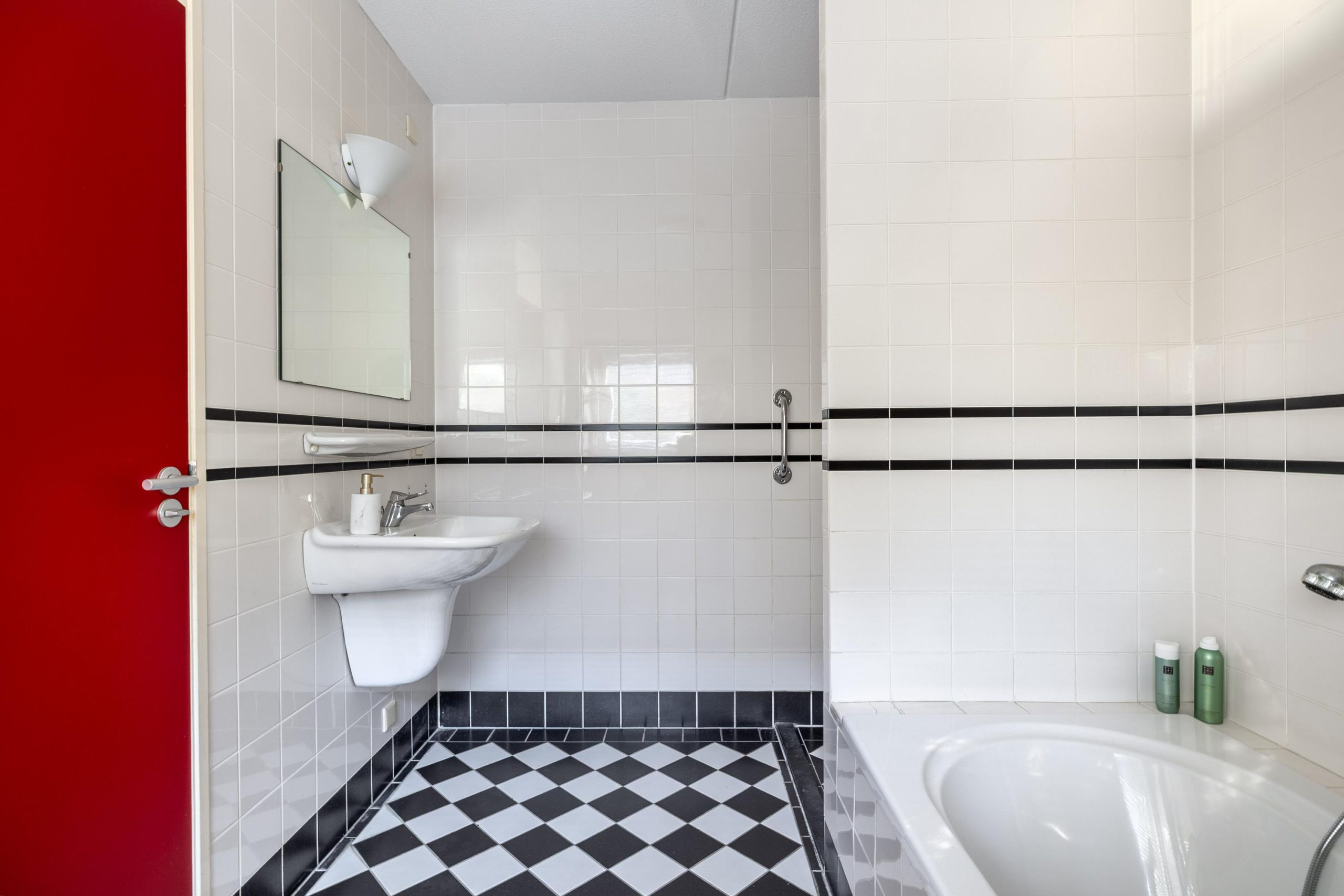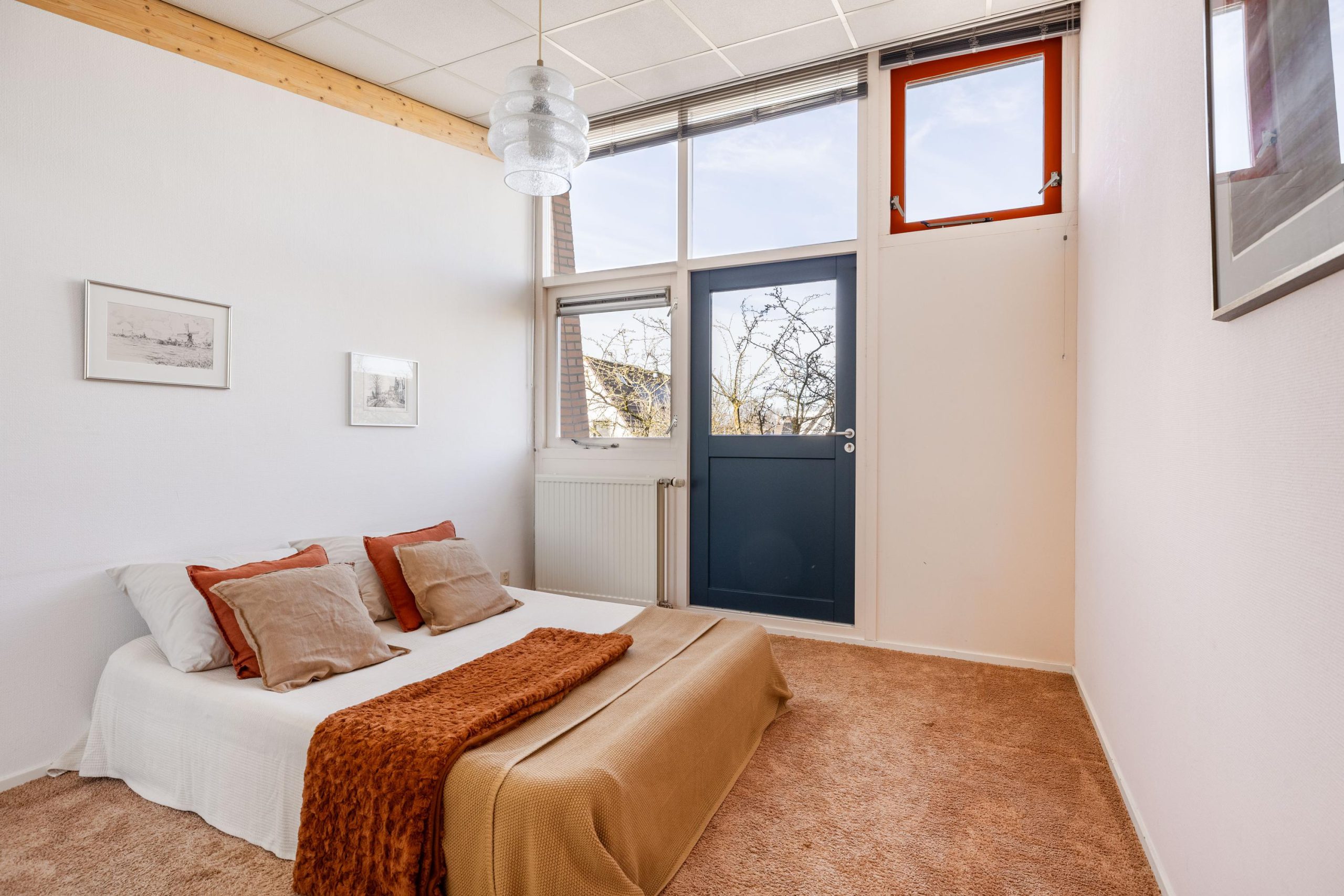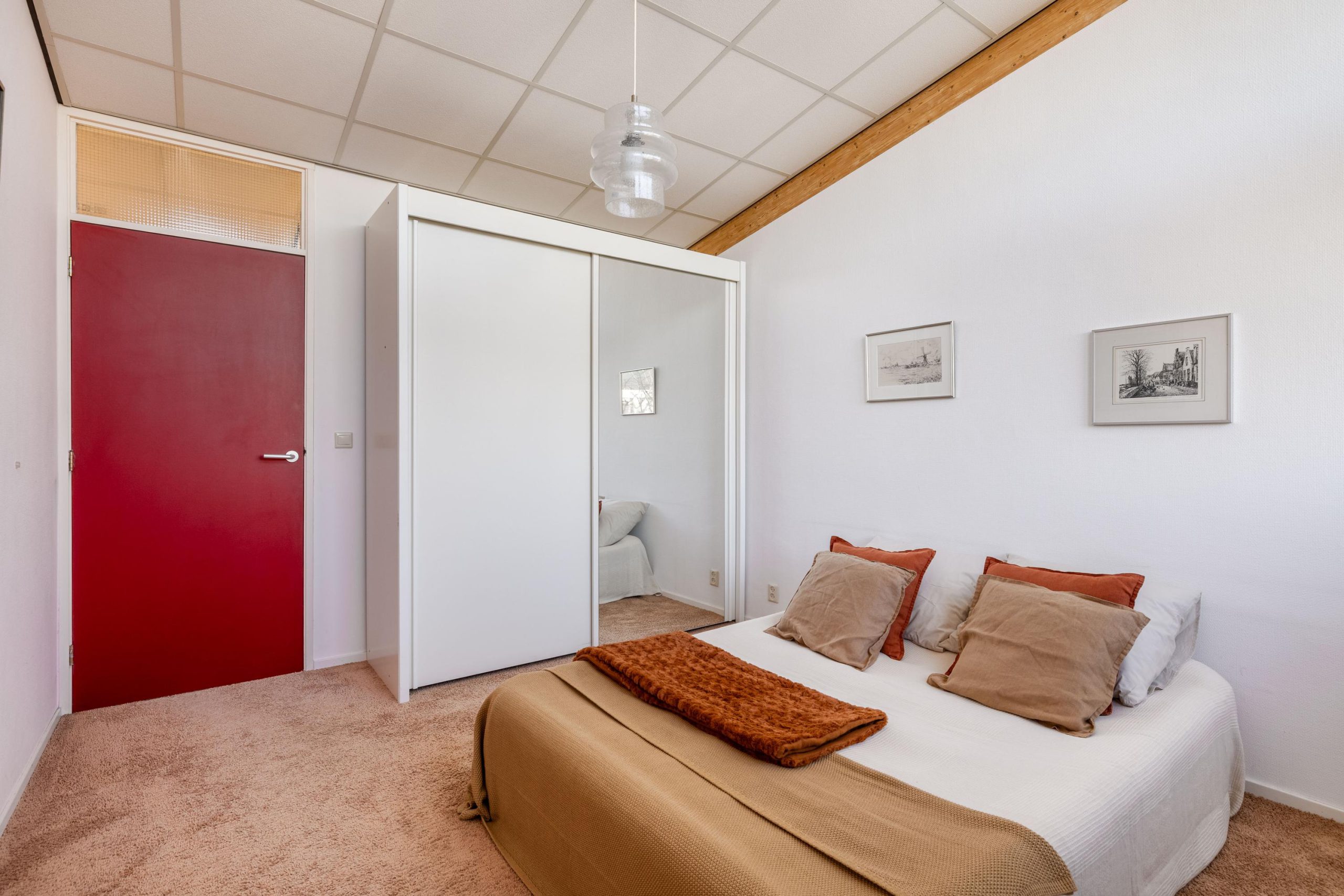 Wat deze woning extra prettig maakt, is dat gelijkvloers wonen hier heel goed mogelijk is. Op de begane grond ligt een ruime slaapkamer die zicht bewust aan de noordzijde van de woning zit. Een fijne plek om te slapen, met voldoende licht en rust. Direct daarnaast ligt de badkamer met ligbad, inloopdouche, toilet en wastafel.