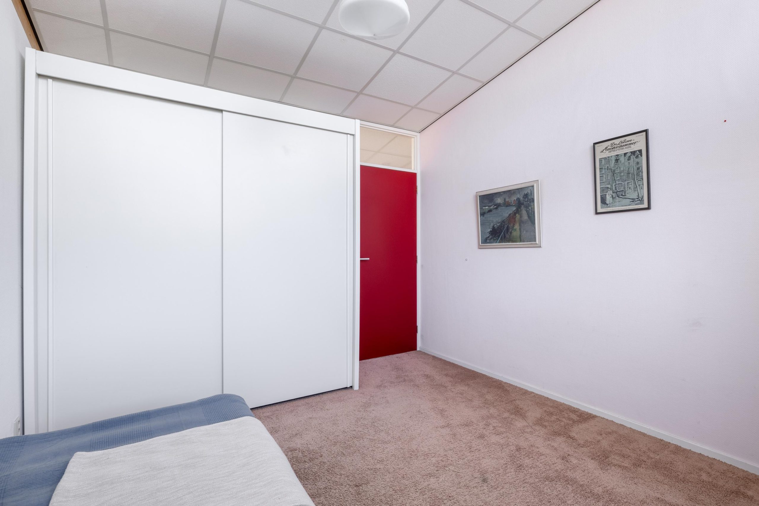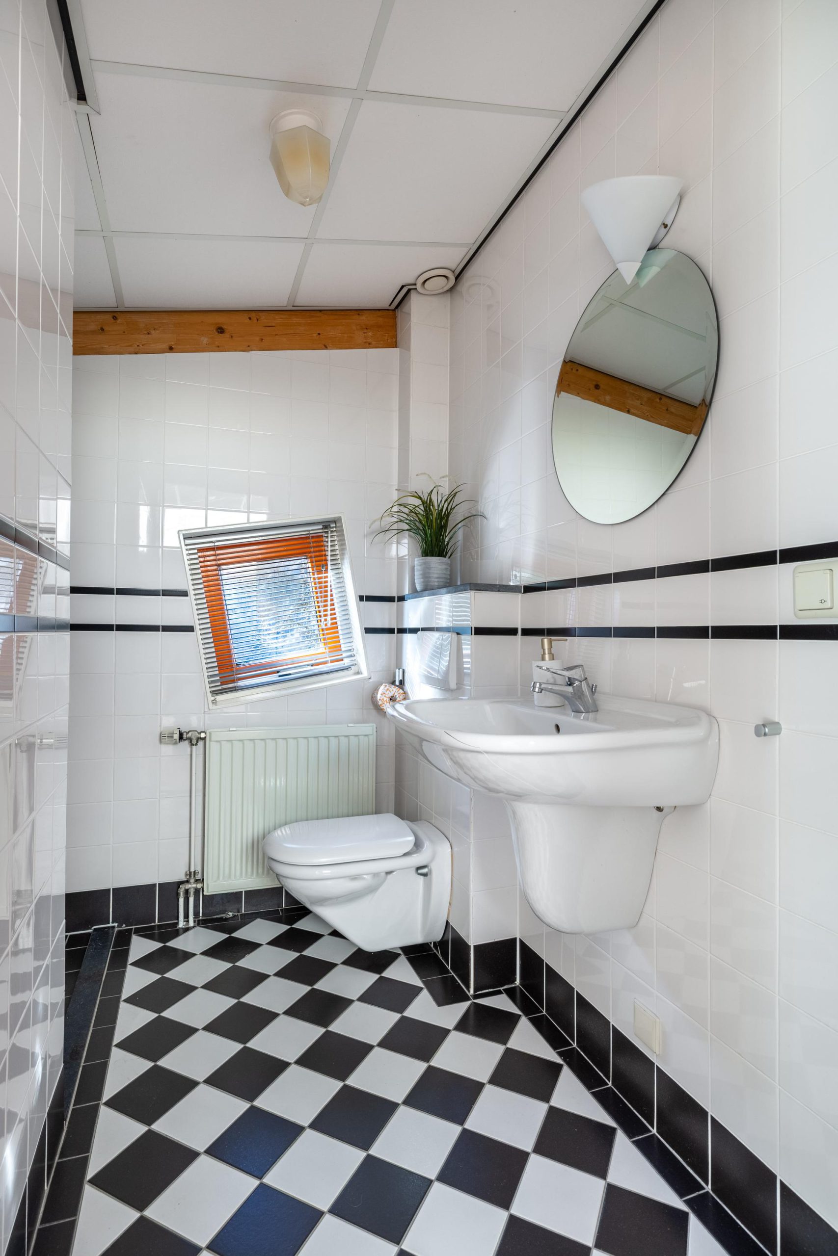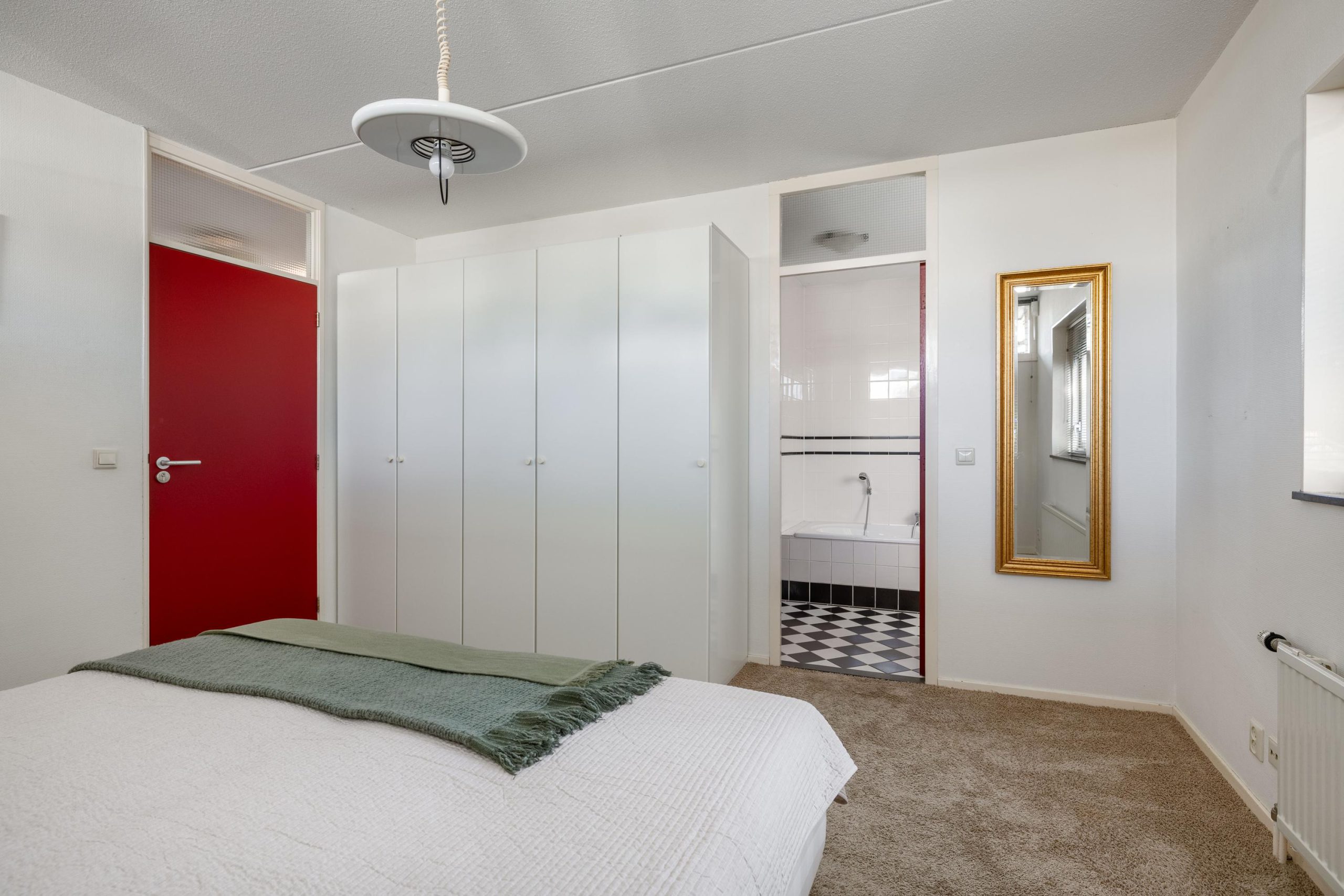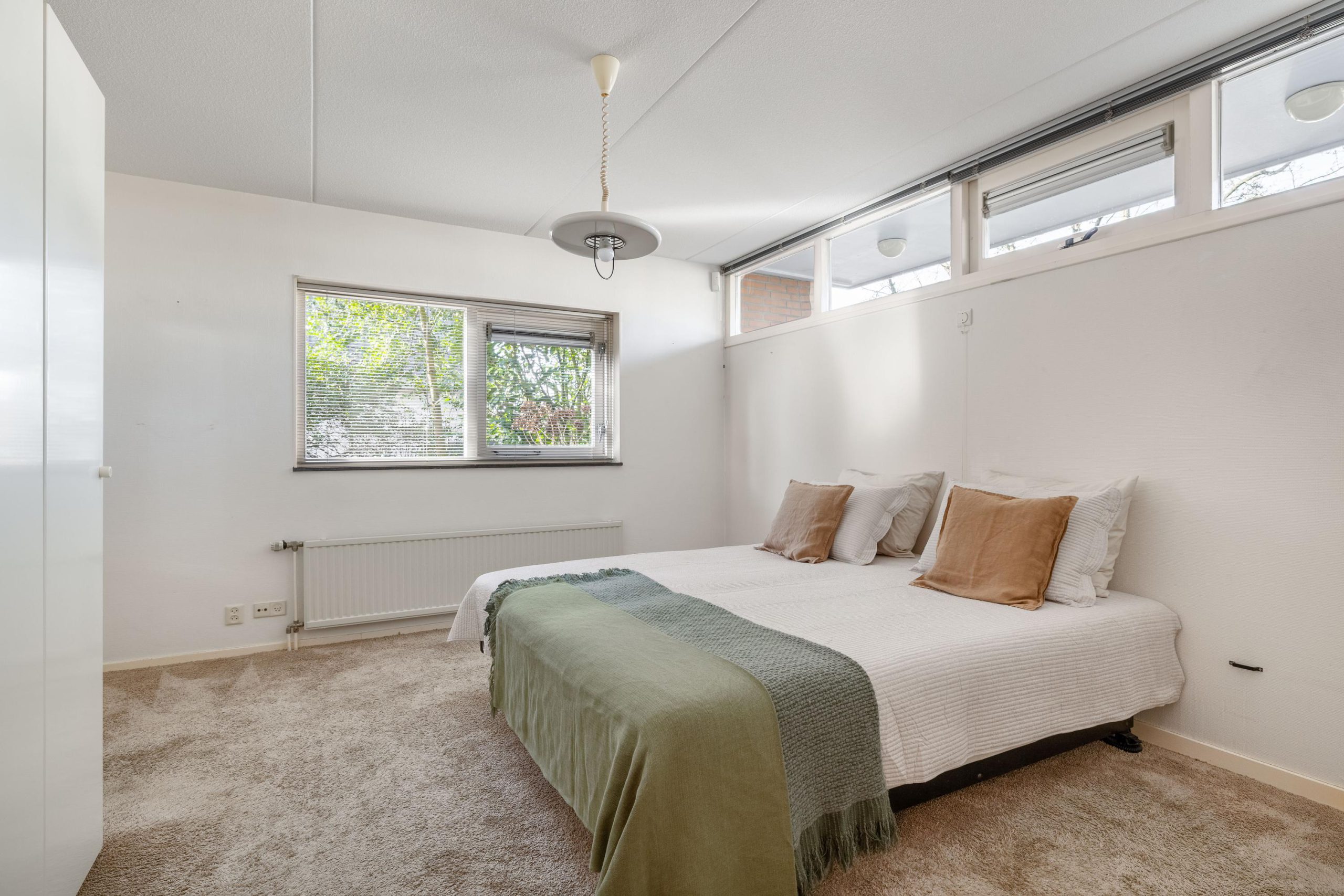 Wat deze woning extra prettig maakt, is dat gelijkvloers wonen hier heel goed mogelijk is. Op de begane grond ligt een ruime slaapkamer die zicht bewust aan de noordzijde van de woning zit. Een fijne plek om te slapen, met voldoende licht en rust. Direct daarnaast ligt de badkamer met ligbad, inloopdouche, toilet en wastafel.
