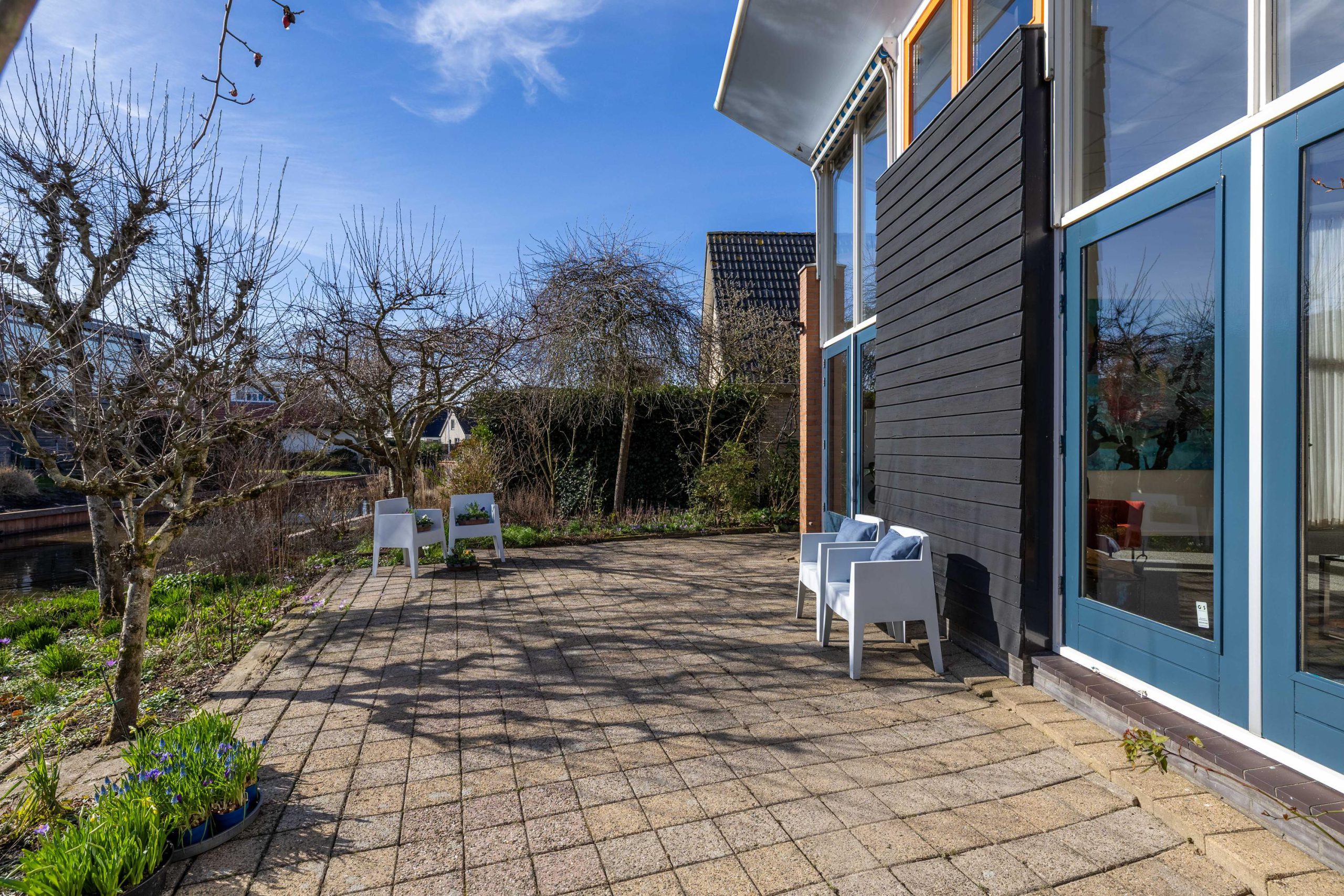 Rondom de woning ligt een royale tuin op een perceel van 508 m2. Door de ligging aan het vaarwater, de verschillende terrassen en de beplanting zijn er altijd fijne plekken om te zitten. In de zon of juist in de schaduw, met uitzicht over het water en volop privacy.