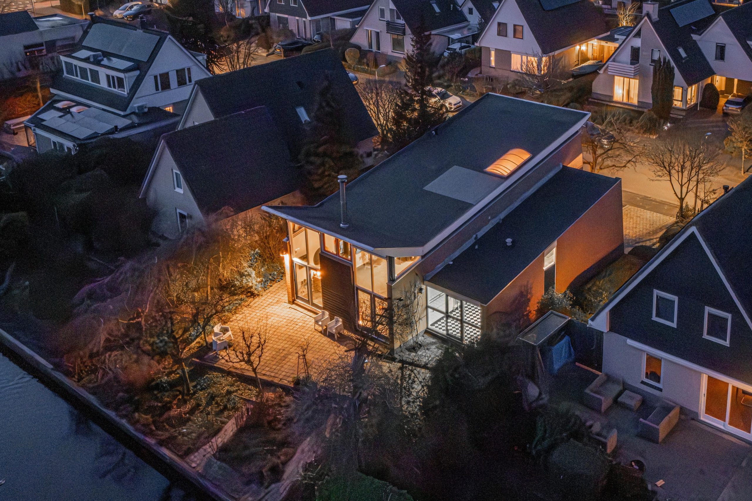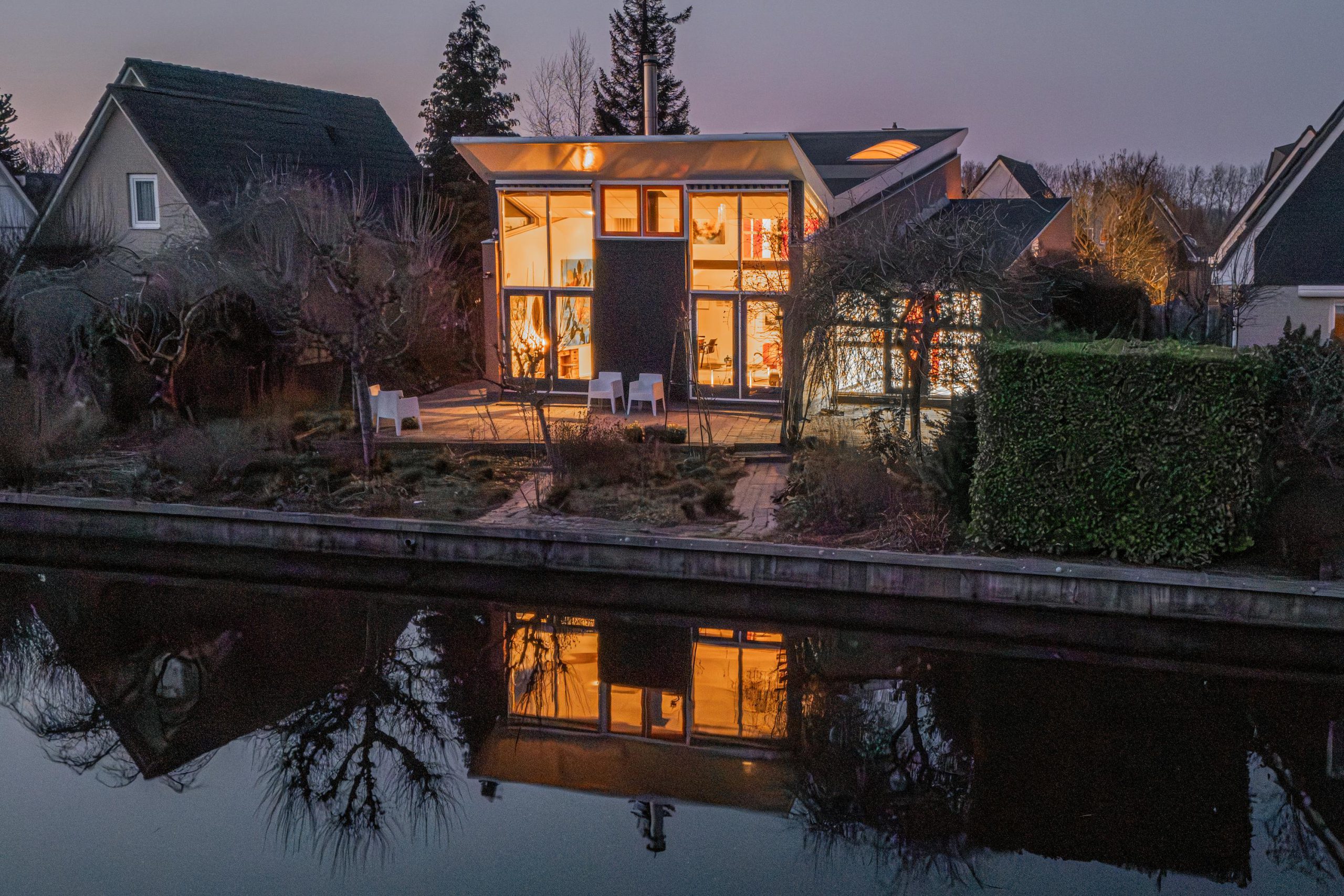 Aan het rustige vaarwater, in een groene en ruime opgezette woonwijk in Leeuwarden, staat deze bijzondere vrijstaande woning aan de Atsmastate 39. Een huis dat in 1993 gebouwd is en met zorg werd ontworpen door architect Peter Walon, in opdracht van de huidige eigenaar die zelf bouwkundig ingenieur is. Dat zie je terug in alles: de slimme indeling, de sterke lijnen in het ontwerp en vooral de manier waarop licht, tuin en water onderdeel van het wonen zijn geworden.